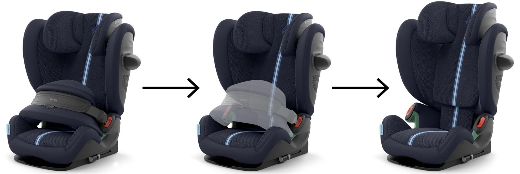 PALLAS G3 i-Size má polohovateľné sedadlo nielen pre mladšie deti, ale aj pre príjemný odpočinok starších detí. Polohovanie je novo u rady PALLAS dostupné po celú dobu používania autosedačky.